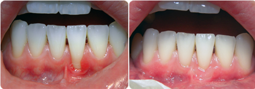 Lorsque cette gencive kératinisée est perdue, l’os a perdu sa protection, et la dent est à risque de se déchausser continuellement.